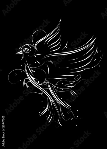 © namosh, Obraz premium ornamental verzierter Vogel auf schwarzem Hintergrund