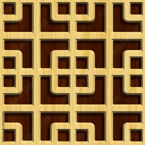 Obraz premium Ornamental wooden lattice on wood background. Seamless pattern.
