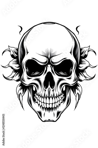 © eric, Fototapeta premium ornamented black and white human skull digital tattoo model