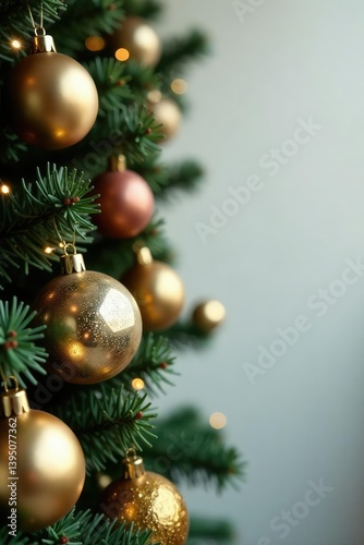 © Kai, Fototapeta premium Ornamented garland lined with gold and silver, metallic, baubles