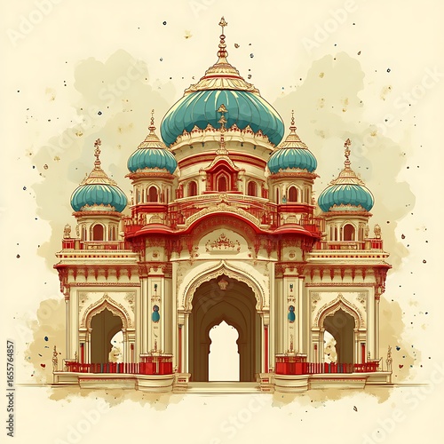 © Sajisuti, Obraz premium Ornate architectural illustration of a grand building.