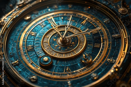 © Gatherina, Fototapeta premium Ornate astronomical clock showing time passing quickly