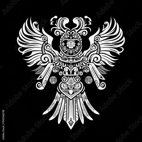 © Mundhut, Fototapeta premium Ornate Aztec Style Bird Design With Wings