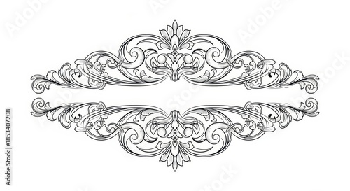 Naklejka premium Ornate baroque-inspired black and white frame with intricate floral scrollwork elements
