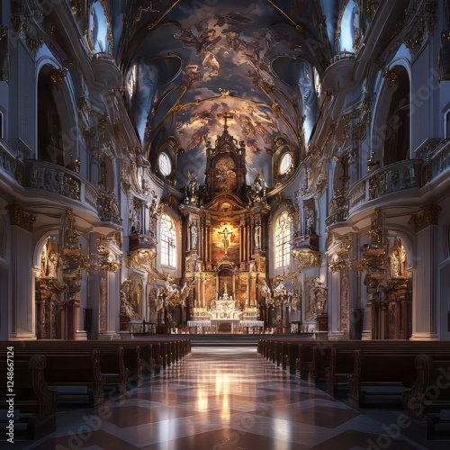 © KOOLAIDMAN100X, Obraz premium Ornate Baroque-style Interior of a Church