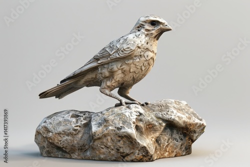 © BabyEyes, Fototapeta premium Ornate bird sculpture perched atop a textured rock.