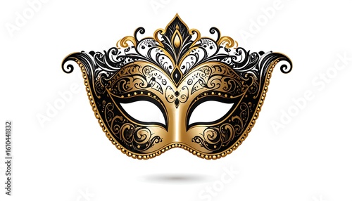 Fototapeta premium Ornate black and gold masquerade mask with swirls and shadow