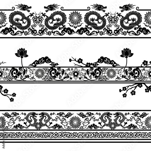 Fototapeta premium Ornate Black and White Floral Borders.