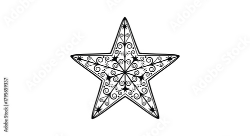 Obraz premium Ornate black and white hand drawn decorative star with intricate patterns and...