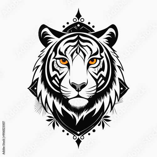 Obraz premium Ornate Black and White Tiger Head with Orange Eyes