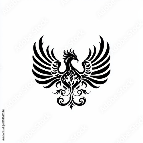 Fototapeta premium Ornate Black Phoenix Bird Design Tribal Style Wings Spread Graphic Art...