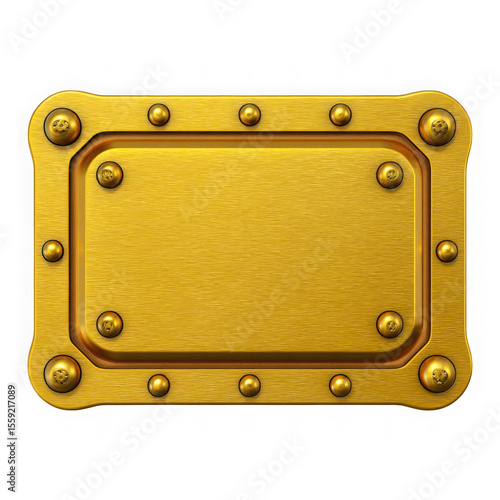Fototapeta premium Ornate brass plaque with rivets and brushed metal texture isolated on...