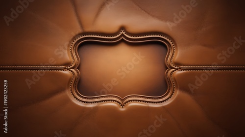 Naklejka premium Ornate brown leather frame with elegant stitching on a textured quilted...