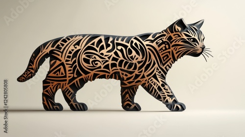 Naklejka premium Ornate Cat Silhouette Walking, Studio, Beige Background, Design