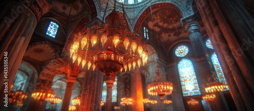 © adiba, Obraz premium Ornate Chandeliers in a Cathedral Interior