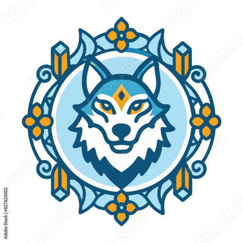 © Johanddss, Fototapeta premium Ornate Circular Design Featuring a Wolf's Head