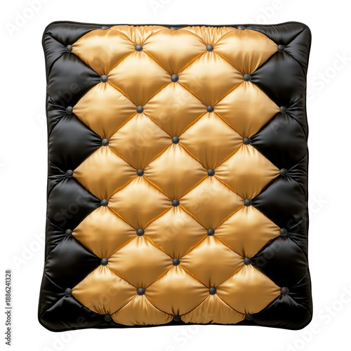 Obraz premium Ornate cushion black and gold button-tufted diamond stitch elegance isolated...