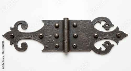 © Dion, Obraz premium Ornate dark gray metal door hinge