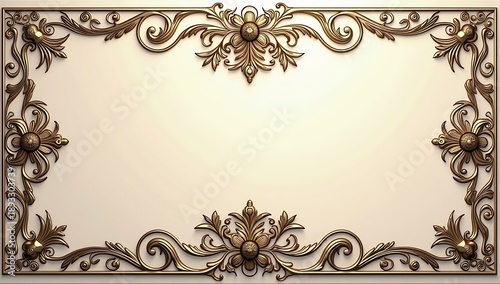© Helni, Fototapeta premium Ornate Decorative Frame with Floral and Scrollwork Design on Beige Background.