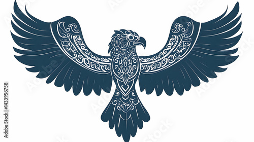 © Yuliana, Obraz premium Ornate design of a soaring bird in dark silhouette.