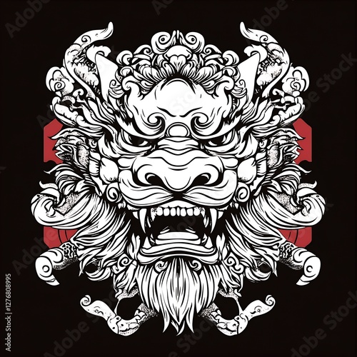 Obraz premium Ornate Dragon Head Design, Symbolic Asian Art, Graphic