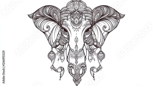 Fototapeta premium Ornate elephant head, detailed design, white background, spiritual art