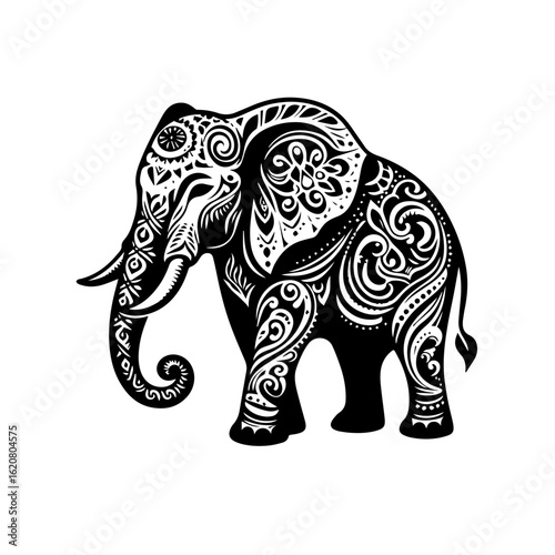 © MD, Fototapeta premium Ornate elephant illustration isolated on white background with detailed patterns