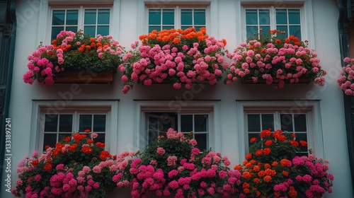 © HERMAWAN, Fototapeta premium Ornate fa?ade with colorful flower boxes