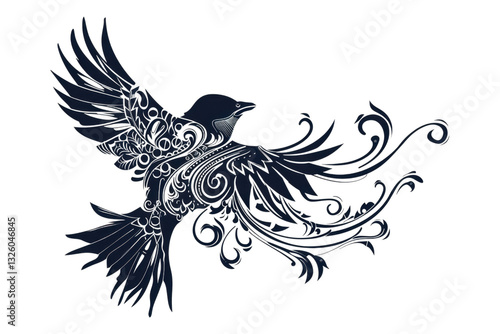 © Nikola Step, Obraz premium Ornate Flying Bird Design