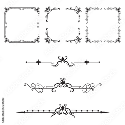 © anomalicreatype, Fototapeta premium Ornate frames and scroll elements Classic wedding frame Free Vector.Wedding