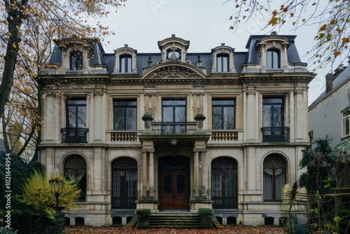 © juliars, Fototapeta premium Ornate french manor house displaying elements of neoclassical architecture with autumn colors