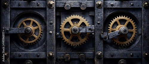 © bata, Fototapeta premium Ornate Gears, Dark Metal Box