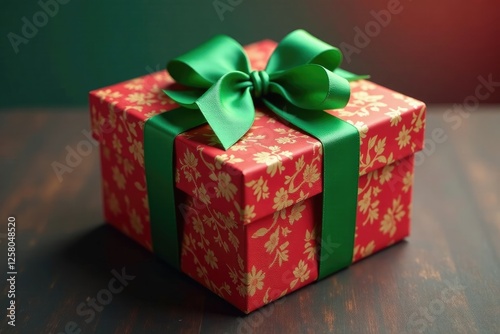 © Prasert, Obraz premium Ornate gift box wrapped in layered craft paper, gift wrap, green bow