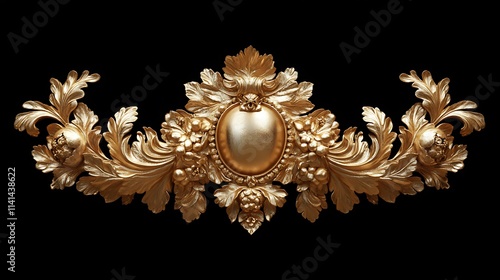 © heinng, Obraz premium Ornate gilded decoration gleams elegantly on black background photo. AI Generated