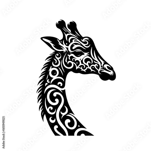 © mdsohag, Fototapeta premium Ornate giraffe head with tribal patterns isolated on white