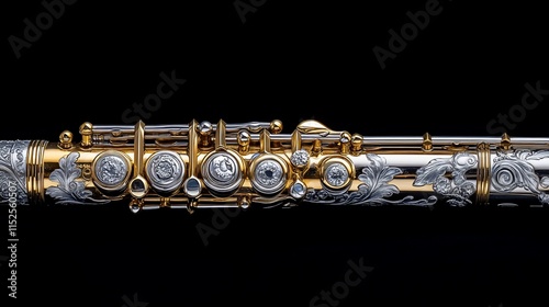 © regulator, Fototapeta premium Ornate gold and silver flute close-up.