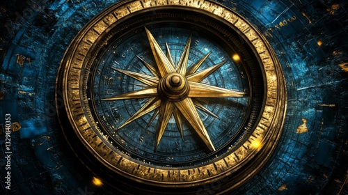 Fototapeta premium Ornate Gold Compass on a Dark Blue Starry Background