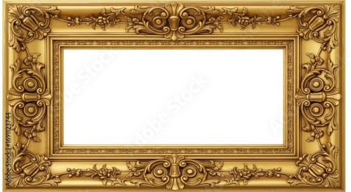 © MST, Obraz premium Ornate Gold Picture Frame With Intricate Carvings And Leaf Motifs