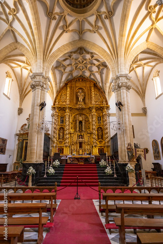 Fototapeta premium Ornate golden altar and vaulted ceiling inside Santa Maria Square Church in Baeza, Spain