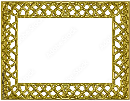 © Fridocha, Obraz premium Ornate golden rectangular frame with intricate interwoven Celtic knotwork pattern.
