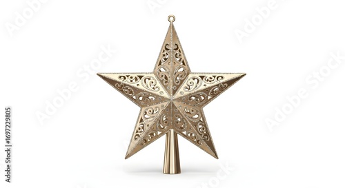 Obraz premium Ornate golden star tree topper with intricate filigree pattern isolated on white