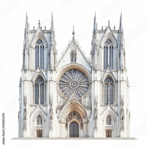 © jambulart, Fototapeta premium Ornate gothic cathedral facade, large rose window.