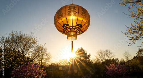 Obraz premium Ornate Hanging Lantern at Sunset