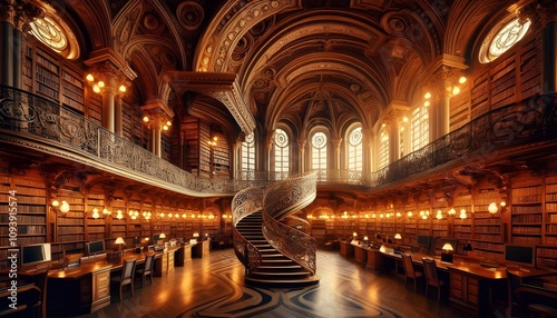 © Lens & Light, Obraz premium Ornate Interior with Arched Windows and Chandeliers