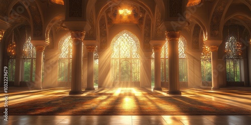 © Ali, Fototapeta premium Ornate interior with sunbeams shining through windows.