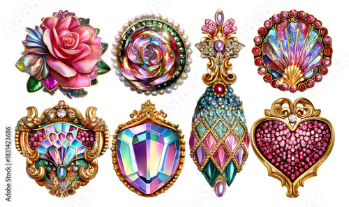 Fototapeta premium Ornate Mosaic Gem Crests Collection Featuring Luxury Jewel Illustrations
