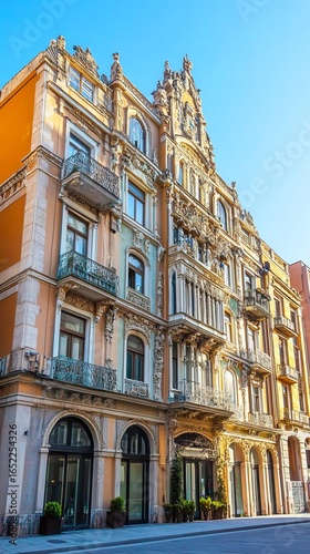 © Tsalasatun, Obraz premium Ornate, multi-story buildings with balconies and architectural details