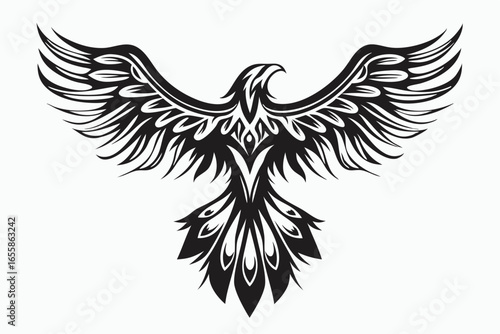 Obraz premium Ornate phoenix soars with striking tribal patterns in black and white...
