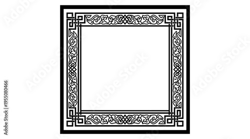 © Kebo, Obraz premium Ornate rectangular border design featuring intricate patterns and empty center space for customization
