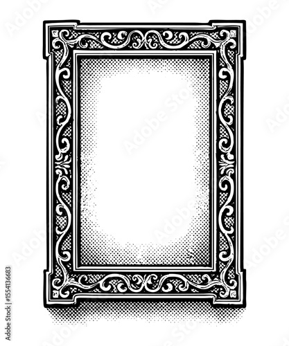 Obraz premium Ornate Rectangular Vintage Frame - Halftone Engraving Style